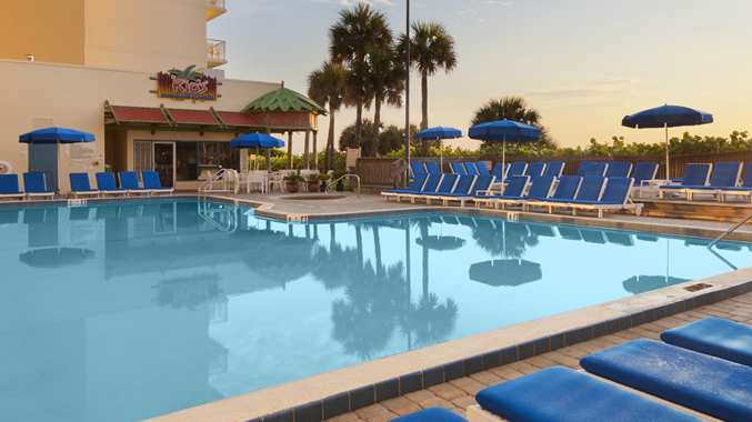 Welcome to the DoubleTree Suites by Hilton Hotel Melbourne Beach Oceanfront, set in the beautiful surrounds of Melbourne, Florida. Overlooking the pristine white sands of the Atlantic Ocean, our resort-style oceanfront hotel is located near Cocoa Beach and Space Coast attractions. This green, environmentally-friendly Melbourne Beach hotel is conveniently situated only 10 minutes from Melbourne International Airport, or an hour east of Orlando International. Explore the area with ease by means of our complimentary local shuttle. Whether traveling for business or leisure, our guests enjoy superior convenience to Melbourne, FL businesses, attractions, beach activities, and more. ur luxurious bedding and bath amenities, 24-hour Business Center and Fitness Center, outdoor pool, and scenic oceanfront location make our Melbourne Beach hotel the perfect place to stay. Relax at the pool and enjoy drinks and snacks from Rio’s Bar and Grill, our poolside café, or indulge in savory dishes and stunning views at Atlantic Jack’s Grill. At our hotel, every suite comes equipped with high-speed wireless Internet and a balcony overlooking the oceanfront. We look forward to welcoming you to Melbourne Beach, Florida with our warmest hospitality and our signature, warm DoubleTree chocolate chip cookie at check-in.